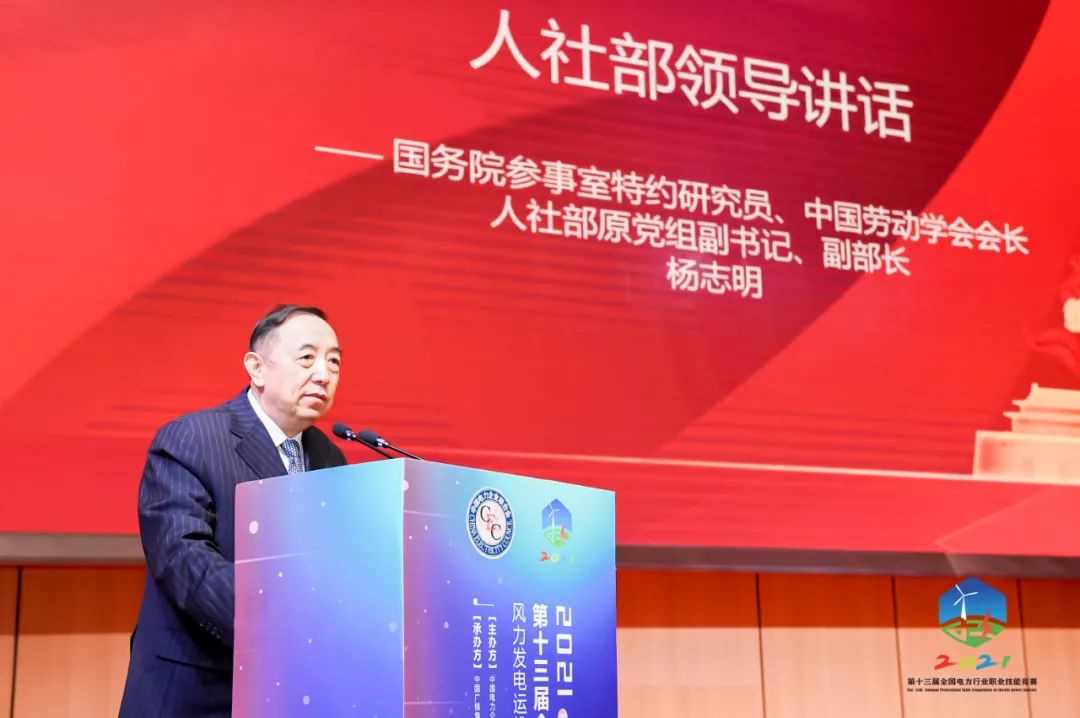 中國電力企業(yè)聯(lián)合會黨委書記、常務(wù)副理事長、第十三屆全國電力行業(yè)職業(yè)技能競賽組織委員會主任楊昆;國務(wù)院參事室特約研究員、中國勞動學會會長、人社部原黨組副書記、副部長楊志明;中國廣核集團有限公司黨委常委、副總經(jīng)理、競賽組委會副主任李亦倫出席活動并致辭。中國廣核新能源控股有限公司黨委書記張志武、中國華能集團有限公司職工董事閆霄鵬等出席活動。中電聯(lián)人才評價與教育培訓(xùn)中心主任張慧翔主持閉幕式。新能源(風力發(fā)電)領(lǐng)域相關(guān)企業(yè)單位代表,百名“電力工匠”代表等參加閉幕式。