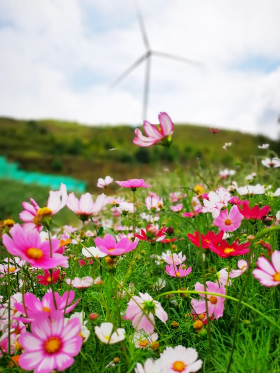 金秋十月是收獲的季節(jié)。此時(shí),廣西樂業(yè)縣全達(dá)村草王山上的16臺(tái)風(fēng)機(jī),高高地矗立云間迎風(fēng)起舞,為當(dāng)?shù)卦丛床粩噍斔途G色能源,為當(dāng)?shù)剜l(xiāng)村振興帶來一派生機(jī)勃勃。