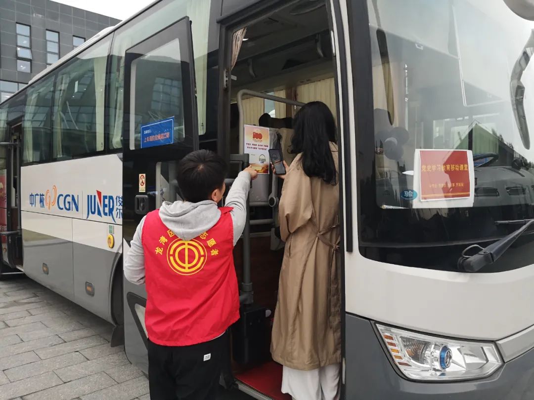 黨支部充分利用員工乘坐班車上下班時間,將班車打造成紅色黨史“流動課堂”,通過車載播音器,每天滾動播放《黨史故事一百講》;組織黨員在車上分享一段黨史故事;組織黨員志愿者在車上開展一次志愿服務活動,使班車成為“紅色專線”和“流動課堂”,讓員工在上下班途中也能持續學習黨史。