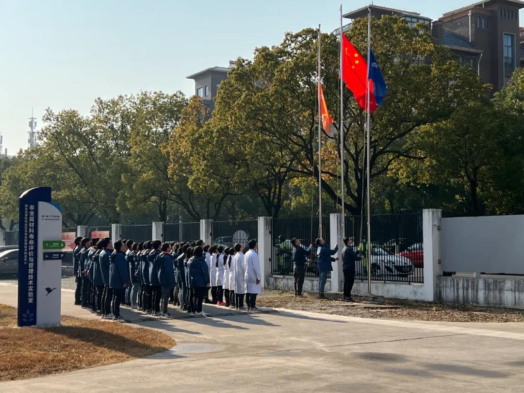 ▲中廣核核技術發展股份有限公司非金屬材料壽命評價與管理技術實驗室舉行升旗儀式