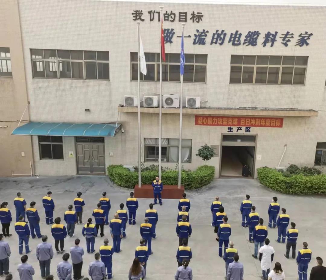 ▲中廣核核技術發展股份有限公司所屬廣東中山高聚物公司舉行升旗儀式