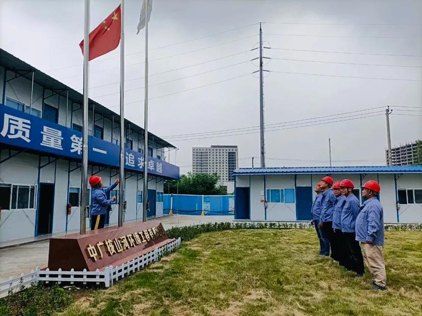 ▲中廣核環保產業有限公司在襄陽項目部舉行升旗儀式