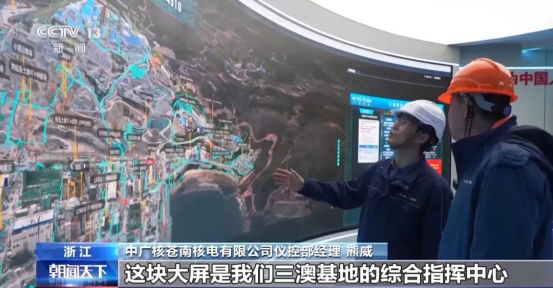 蒼南核電儀控部經理熊威介紹,這塊大屏是我們三澳基地的綜合指揮中心,也是我們的智慧工地系統,在這個屏幕上可以清晰地看到我們整體項目的建設情況。目前現場作業人數已經達到2萬人,進入廠區的,在屏幕上可以看到是有11579人。