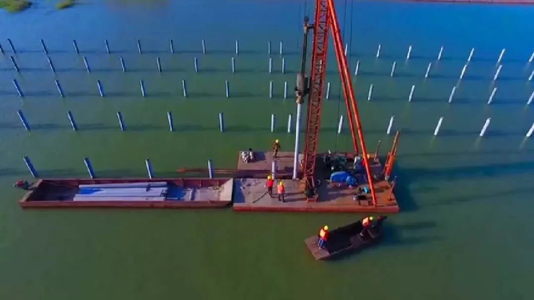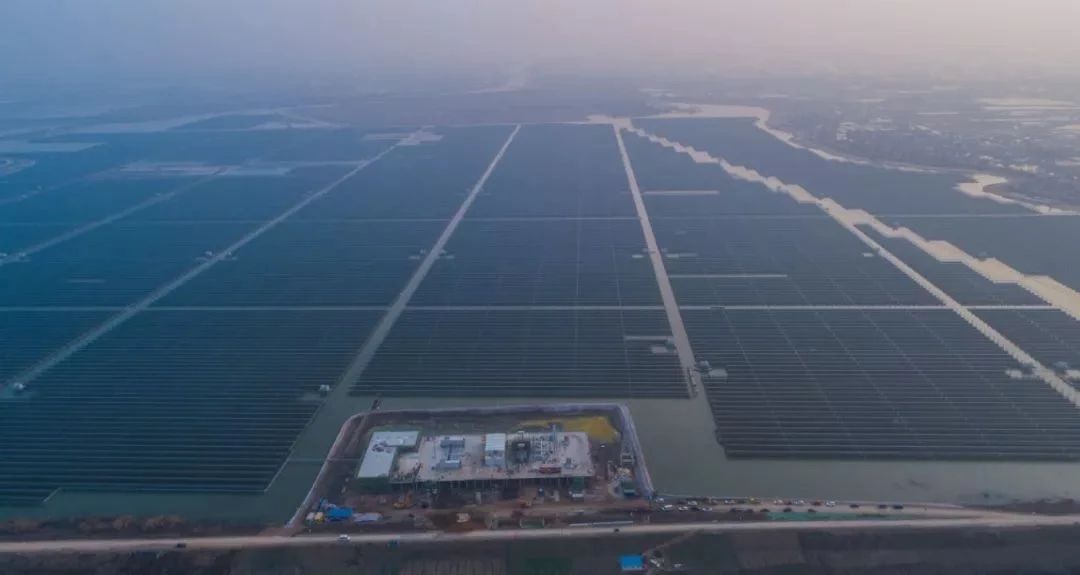 中廣核當涂光伏項目位于安徽省馬鞍山市當涂縣大隴鎮雙潭湖域內,使用水面約6000畝,建設容量為260MWp。項目自2019年9月16日開工建設,僅歷時98天時間建成。該項目是國家發改委批復的2019年第一批平價光伏項目,是安徽省2019年第一批平價光伏示范項目唯一開工并建成投運的項目,目前也是華東地區單體容量最大的平價光伏項目。